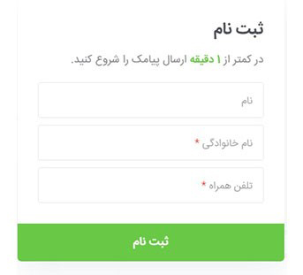 در صفحه بازشده اطلاعات خواستهشده برای تکمیل ثبتنام در ملی پیامک را وارد نمایید و سپس روی دکمه ثبتنام کلیک کنید.