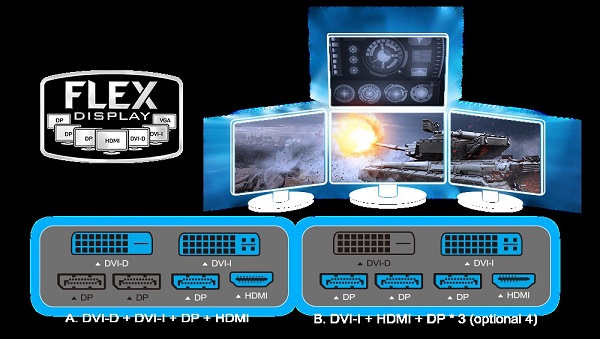 فناوری GIGABYTE Flex به کار رفته در این کارت گرافیک میتواند بطور خوکار تمامی نمایشگرهای متصل به خروجیهای کارت گرافیک را شناسایی کرده کرده و یک تصویر واحد را بصورت چینش چهار نمایشگره پردازش کند تا تجربه استفاده از رزولوشنهای عریض و فوق عریض را برای کاربران امکانپذیر سازد.