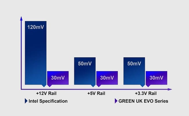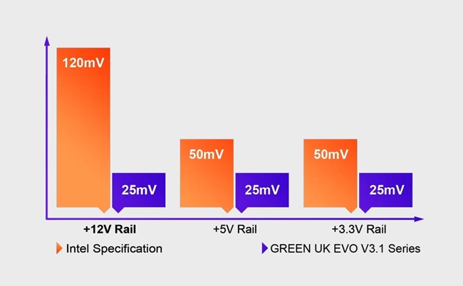 در عمل، این سطح از پایداری و خلوص ولتاژ چیزی است که بیشتر در پاورهای گرانقیمتتر کلاس حرفهای برای گیمرها و کاربران پیشرفته دیده میشود، اما گرین آن را به یک پاور میانرده نیز آورده است.