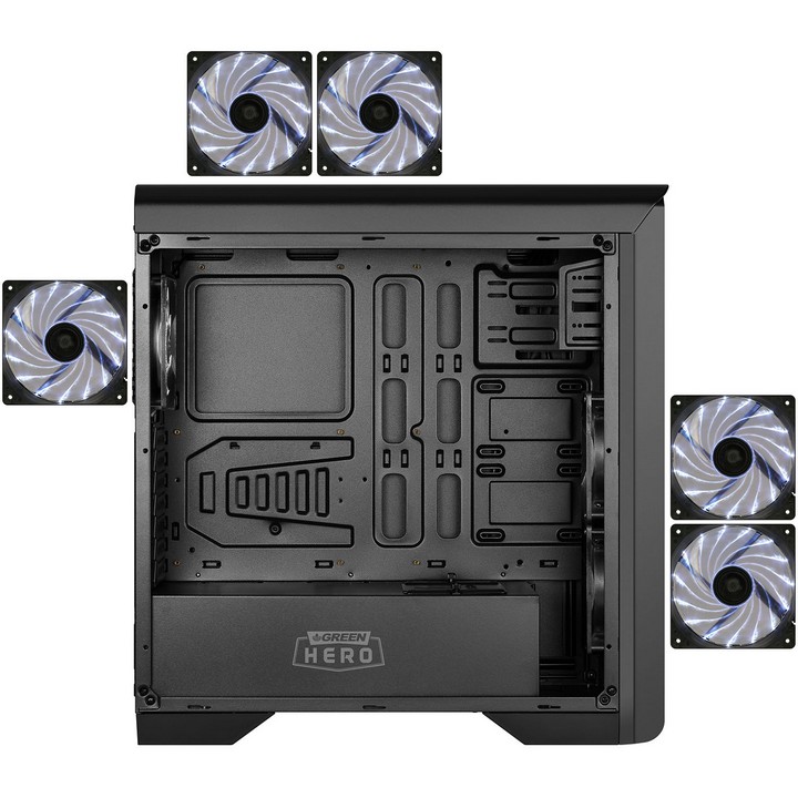 کیس زد2 پلاس هیرو، مجموعا به همراه 5 عدد فن 12 سانتی متری مجهز به 15 عدد دیود نوری با رنگ سفید یخی و مطابق شرایط ذیل عرضه می گردد: