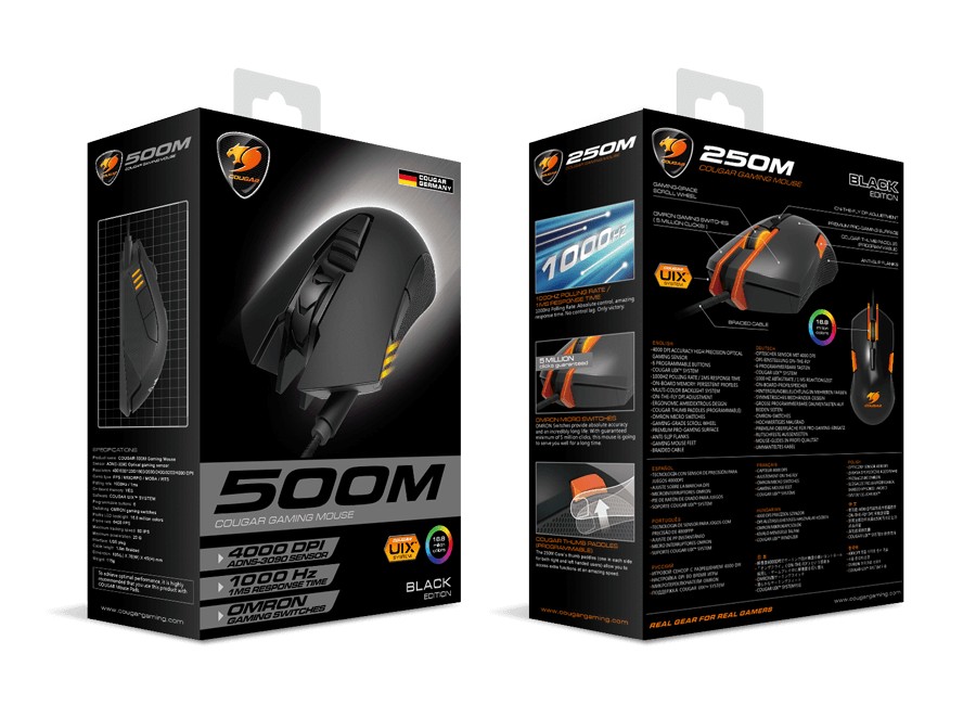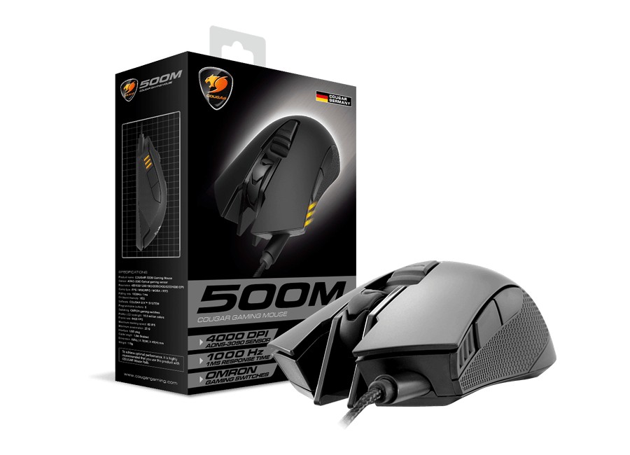 این مدل را میتوان به معنای واقعی کلمه یک محصول متوازن از نظر قیمت، کارایی و کیفیت عنوان کرد. Cougar 500M که حسگر اپتیکال گیمینگ 4000 DPI مدل ADNS-3090 را با خود به همراه دارد با پشتیبانی از Polling Rate حداکثر 1000Hz با زمان تأخیر کمتر از 1ms در بازیهای آنلاین ژانرهای شوتر همواره برگ برنده شما محسوب خواهد شد. طراحی ظاهری و ارگونومی فوقالعاده این ماوس 6 کلیدِ به گونهای است که بیشترین سازگاری را با کاربردهای گیمینگ ارائه دهد. از جمله مهمترین ویژگیهای طراحی این ماوس میتوان به اسکرول بسیار دقیق مخصوص کاربردهای گیمینگ، سوئیچ تحریک قابل برنامه ریزی با طراحی خاص و بدنه ضد لغزش و تعریق دست اشاره کرد.