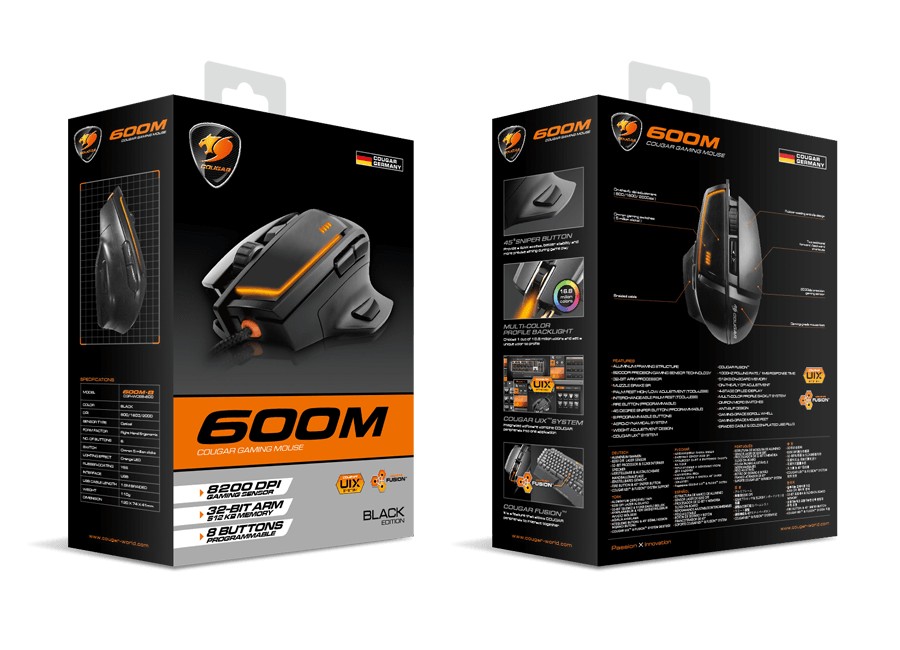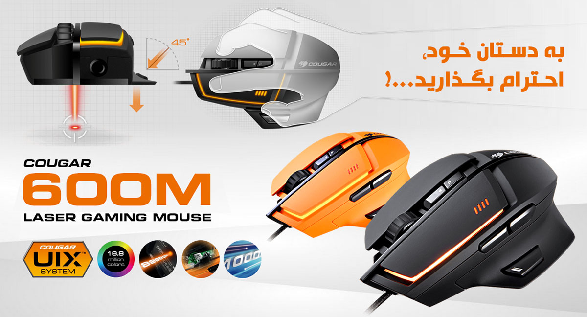 اگر بهصورت مادرزادی گیمر متولد شدهاید ماوس لیزری و فوقالعاده مدرن، زیبا و ارگونومیک Cougar 600M را به شما توصیه میکنیم. این ماوس 8 کلیدِ با برخورداری از حسگر لیزری ADNS-9800 دقت 8200 DPI، Polling Rate تا 1000Hz به همراه کنترل میکروپروسسوری توسط پردازنده 32-Bit مبتنی بر معماری ARM Cortex-M0 و حافظه اختصاصی512KB جهت ذخیره 3 پروفایل مختلف از تنظیمات سفارشی سوئیچها و عملکرد هر یک از آنها در شرایط مختلف آماده است تا بیوقفه و طولانی مدت در خدمت گیمرهای حرفهای باشد!