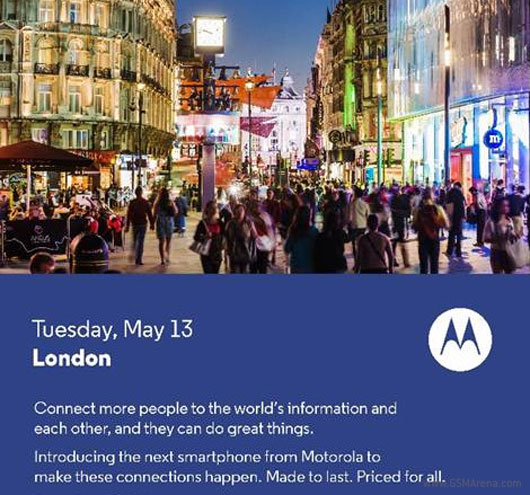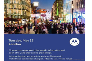 به تازگی موتورولا دعوتنامه ای برای کنفرانس 13 ام ماه می ارسال کرده تا از اسمارت فونی خاص رونمایی کند.این رویداد دو هفته دیگر در ساعت 8:45 صبح به وقت محلی و در لندن برپا خواهد شد.