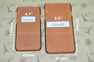 در تصویر لو رفته از کشور فرانسه، دو آیفون کنار هم قرار گرفته اند که فبلت آیفون 6s از ابعادی 157 میلی متر در 81 میلی متر ی و برادر کوچک تر آن آیفون 6 از ابعادی 138 میلی متر در 67 میلی برخوردار است. شایان ذکر است که ابعاد آیفون 6s به ابعاد نوکیا Lumia 1520 نزدیک است.