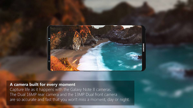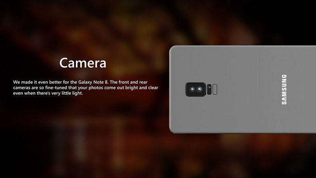 علاوهبراین مطابق با شایعات گذشته، طراح این تصاویر مفهومی فبلت گلکسی نوت 8 را با دوربین دوگانه به تصویر کشیده است؛ قابلیتی که انتظار داریم در نهایت، به همراه فبلت پرچمدار جدید سامسونگ تا پیش از پایان سال جاری میلادی ارائه شود. همچنین، سنسور اثرانگشت در زیر دوربین دوگانه در پشت گوشی قرار دارد که البته، بعید میدانیم این موضوع صحت داشته باشد.