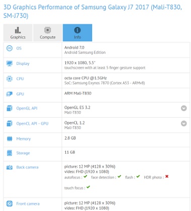 اطلاعات بهدستآمده، نشان میدهد که مدل 2017 گوشی گلکسی J7 سامسونگ با شماره مدل SM-J730 در آزمون مذکور دیده شده است. این مدل با سیستمعامل اندروید نوقا 7.0 روانه بازار خواهد شد و شرکت سامسونگ، رابطکاربری سیستمعامل اندروید را شخصیسازی نموده است. البته، بعید میدانیم که این مدل از رابطکاربری مشابه با گوشی پرچمدار گلکسی S8 استفاده نماید.