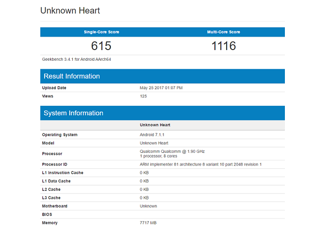 پس از اینکه در هفتههای اخیر مشخص شد گوشی پرچمدار و بالارده نوکیا 9 قرار است با اسم رمز Unknown Heart به مرحله تولید برسد و در آن شاهد حضور یکی از پردازندههای کمپانی کوالکام و همچنین چهار گیگابایت حافظه رم خواهیم بود، امروز تصویری از بنچمارک Geekbench از طریق سایتهای خبری گوناگون منتشر شد که نشان میدهد HMD Global قصد دارد نسخه قدرتمندتری از این گوشی که دارای 8 گیگابایت حافظه رم است را هم راهی بازار کند.