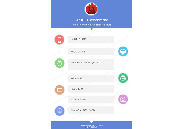 پس از معرفی گوشیهای نوکیا 6، نوکیا 5 و نوکیا 3 از سوی HMD Global، به نظر میرسد این کمپانی فنلاندی قصد دارد در محصول بعدی خود با نام نوکیا 9 از یک گوشی بالارده و قدرتمندتر رونمایی کند. پس از مشخص شدن تعدادی از ویژگیهای این گوشی پرچمدار در بنچمارک Geekbench، این بار نوبت به بنچمارک AnTuTu رسیده است که آن هم تعدادی از ویژگیهای اصلی این گوشی را فاش کند.