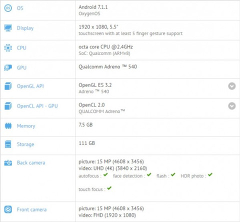 براساس اطلاعات بهدست آمده، OnePlus 5 به یک نمایشگر 5.5 اینچی Full HD با رزولوشن 1920 در 1080 پیکسل مجهز شده است و تراشه اسنپدراگون 835 کوالکام با پردازنده هشت هستهای به آن قدرت میدهد. فرکانس هستههای پردازشی بر روی 2.4 گیگاهرتز تنظیم شده است و واحد پردازش گرافیکی Adreno 540 برای گوشی جدید شرکت وانپلاس در نظر گرفته شده است.