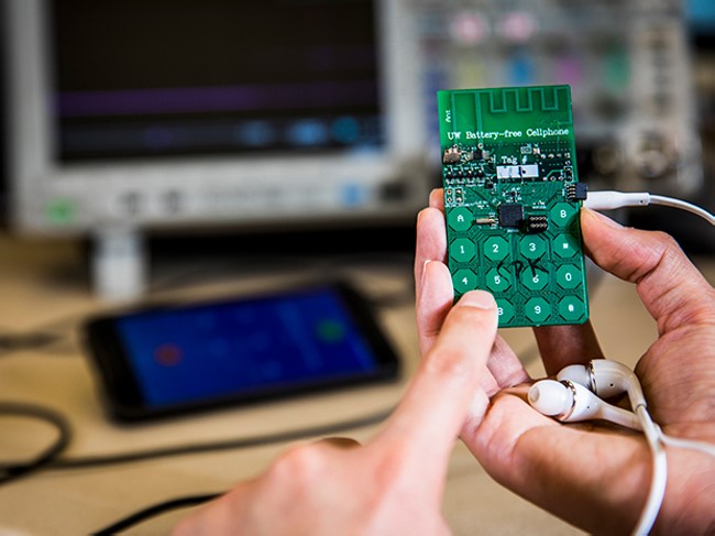 محققان دانشگاه واشنگتن، گوشی هوشمند مدرنی را طراحی کردهاند که بدون نیاز به استفاده از باتری، امکان برقراری تماسهای صوتی را ممکن میسازد. این محصول از امواج رادیویی به عنوان ابزار جدید در انتقال بیسیم توان الکتریکی استفاده میکند.
