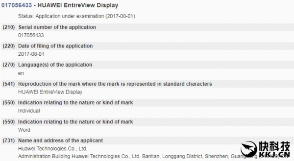 نام نمایشگر بدون حاشیه فبلت پرچمدار جدید هوآوی در اداره ثبت اختراع اروپا، به ثبت رسیده و هوآوی از نام EntireView برای نامگذاری آن استفاده کرده است که عرضه میت 10 را با نمایشگر بدون حاشیه تأیید خواهد کرد.