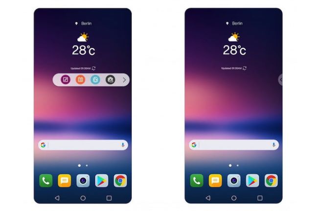 الجی وی ۳۰ از صفحهنمایش ۶ اینچی OLED برپایه طراحی FullVision بهرهمند خواهد شد اما خبری از صفحهنمایش ثانویه مشابه با آنچه در V20 شاهد هستیم نخواهد بود. در مقابل، الجی از منوی نیمه شفافی به نام Floating Bar یا نوار شناور استفاده خواهد کرد که کلیدهای آن اسکرین را برای دسترسی سریع به قابلیتهای پراستفاده در خود جا میدهند. این نوار شناور در زمانی که کاربر به آن نیاز ندارد خیلی سریع محو میشود. این سیستم، پیش از این توسط شرکتهایی نظیر هواوی و شیائومی هم استفاده شده بود.