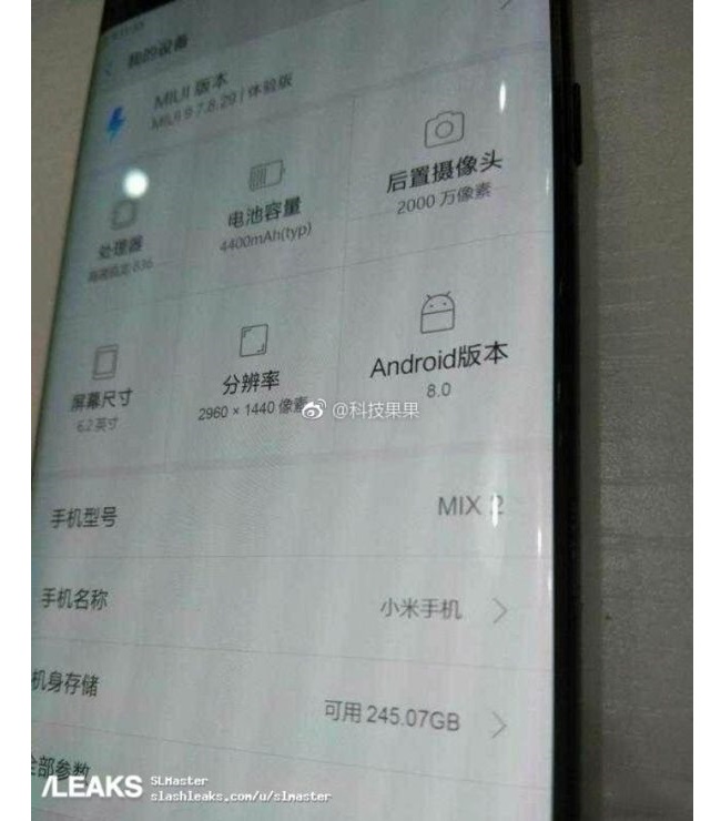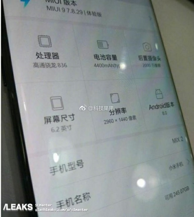 ساعاتی پیش یکی از کاربران شبکه اجتماعی چینی Weibo تصاویری را منتشر کرد که ضمن نمایش پنل جلویی گوشی Mi MIX 2 بسیاری از ویژگیهای سخت افزاری این گوشی را هم فاش میکند. این تصویر جدید با تصاویری که پیش از این از گوشی Mi MIX 2 منتشر شده بود همخوانی دارد و نشان میدهد که صفحه نمایش این گوشی در لبههای بالایی و کناری خود حاشیه بسیار کمی دارد و تنها میتوان در زیر آن، این حاشیه را قابل لمس دانست.