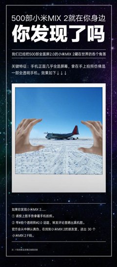 رئیس شیائومی، همچنین اعلام کرده است که گوشی بدون حاشیه جدید این شرکت وارد تولید انبوه شده است. به همراه این تصاویر، تعدادی تصویر تبلیغاتی نیز از Mi Mix 2 منتشر شده که به حاشیههای بسیار باریک در اطراف نمایشگر Mi Mix 2 اشاره میکند: