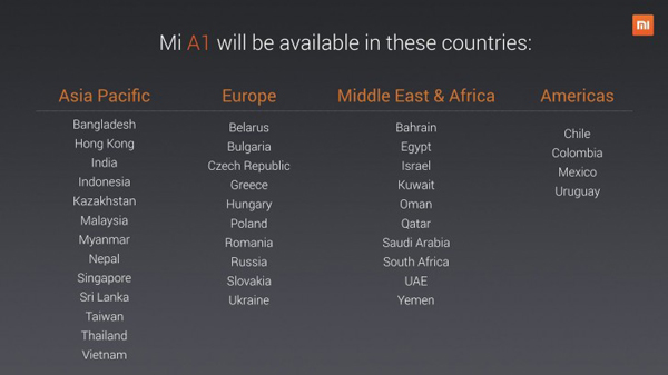 گوشی میانرده شیائومی Mi A1 در رنگهای مشکی، طلایی و صورتی عرضه خواهد شد و 233 دلار قیمت دارد. این گوشی در 37 کشور به فروش خواهد رسید و عرضه آن از تاریخ 12 سپتامبر (21 شهریور ماه) آغاز میشود.