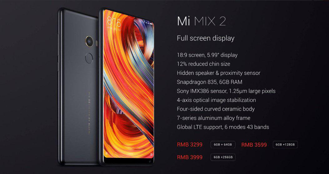 شرکت شیائومی، گوشی بدون حاشیه جدیدش را در در رنگهای سفید و مشکی عرضه خواهد کرد. می میکس 2 با بدنهای از جنس شیشه و فلز عرضه خواهد شد و سنسور اثرانگشت نیز در پنل پشتی گوشی جای گرفته است. همچنین، شرکت شیائومی برای برآمدگی گوشی از طلای 18 عیار استفاده کرده است. مدل پایه شیائومی می میکس 2 با قیمت 516 دلار و چهار گیگابایت رم و 64 گیگابایت حافظه عرضه خواهد شد.