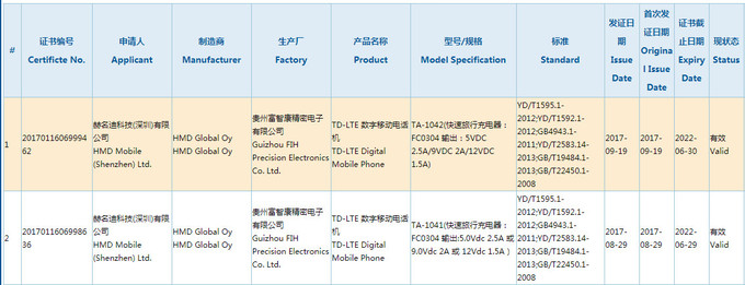 دو گوشی جدید نوکیا در چین، تأییدیه دریافت کردهاند؛ شماره مدل این دو گوشی، TA-1041 و TA-1042 است و در اطلاعات ثبت شده از این دو گوشی، به پشتیبانی آنها از قابلیت شارژ سریع اشاره شده است. قابلیتی که در حالحاضر، تنها به گوشی پرچمدار HMD Global یعنی نوکیا 8 اختصاص دارد.