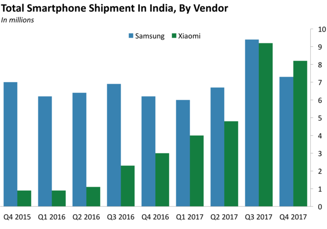 بازار موبایل در چین در سال گذشته اوضاع نابسامانی را تجربه کرد و به گونه سال 2017، اولین سالی بود که این بازار در چین دچار بحران گردید. البته به نظر میرسد وضعیت این بازار به تدریج در حال بازگشت به روال عادی است اما با این وجود اگر شیائومی به دنبال افزایش 43 درصدی فروش است باید با قدرت تمام در بازار هند حضور داشته باشد و در عین حال تلاش کند تا صادرات خود را به بازارهای دیگر نیز گسترش دهد.