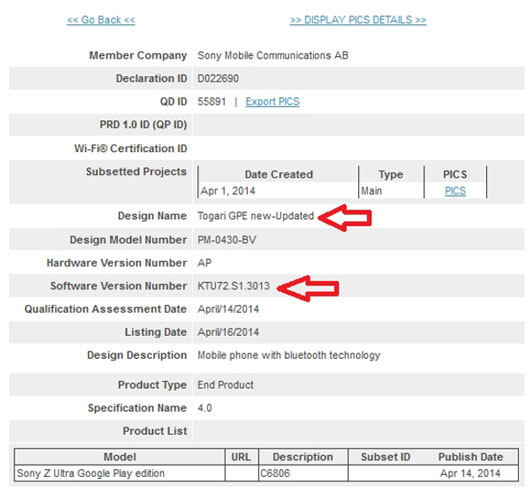 نسخه گوگلی سونی Xperia Z Ultra با دریافت نسخه نرم افزار KTU72.S1.3013 گواهی شد که گفته می شود جدید ترین نسخه اندروید می باشد.