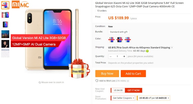 امروز یک فروشگاه آنلاین به نام AliExpress که حضور فعالی در اسپانیا دارد، گوشی Xiaomi Mi A2 Lite را برای فروش بر روی وب سایت خود قرار داد و به نظر میرسد بسیار ارزانتر از آن چیزی باشد که پیشتر تصور میشد.