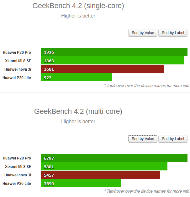 همانطور که انتظار میرفت، چیپ ست میان رده کوالکام دارای عملکرد بهتری در پردازش تکه هستهای است که با افزایش کارایی 20 درصدی وعده داده شده با هستههای A73 هم خوانی دارد. اگر بخواهیم هستههای A55 را با A53 مقایسه کنیم، A55 چیزی حدود 18 درصد سریعتر است، با این حال این اختلاف در تست چند هستهای چیزی حدود 7 درصد است. در حقیقت Kirin 710 دارای چهار هسته بزرگ (قویتر) است اما Snapdragon 710 فقط دو هسته بزرگ دارد، بنابراین کارایی نهایی به نوع پردازش وابسته خواهد بود. برای نمونه اگر بیش از دو هسته پردازشی برای اجرای بازیها مطلوبتر باشد، احتمالاً کارایی Kirin 710 بهتر خواهد بود.