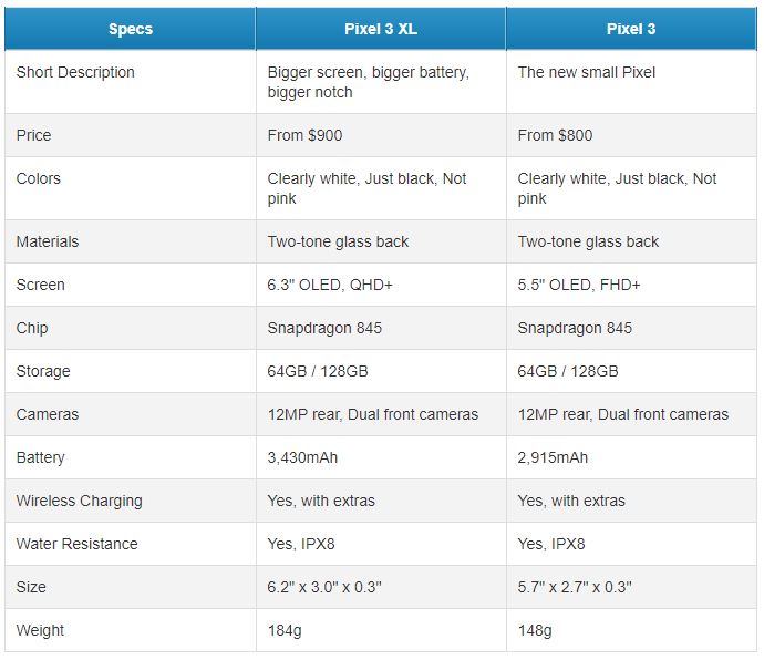 قیمت های موجود در ایالات متحده نیز 800 دلار برای نسخه پایه و 900 دلار برای Pixel 3 XL شروع خواهد شد. در بریتانیا نیز قیمت ها به ترتیب 739 و 839 برای پیکسل 3 و 869 و 969 برای Pixel 3 XL خواهد بود.