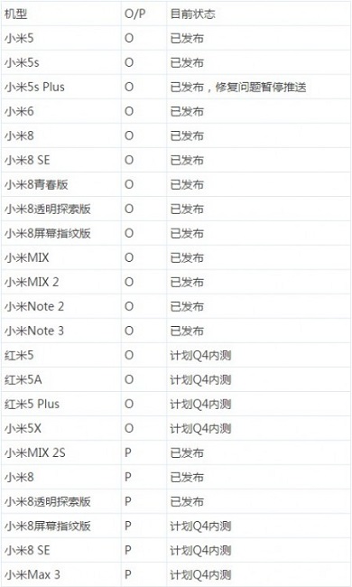 به گفته شرکت شیائومی، دستگاههایی که تا به امروز دو بروزرسانی بزرگ دریافت کردهاند و یا اخیراً بروز شدهاند، در آینده نزدیک اندروید پای را دریافت خواهند کرد؛ همچنین دستگاههای قدیمی تر از چرخه دریافت بروزرسانیها خارج میشوند. متأسفانه در این لیست شیائومی به دستگاههایی بروزرسانی اندروید پای را دریافت نمیکنند، اشارهای نکرده است.