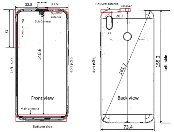 در سند منتشر شده از سوی FCC تصویر شماتیک این گوشی نیز یافت میشود که ابعاد 155.2x73.4 میلی متر را نشان میدهد. گوشی P Smart (2019) به دوربین پشتی دوگانه و یک دوربین جلویی مجهز است. آنطور که از این تصاویر به نظر میرسد، P Smart (2019) دارای نمایشگر تمام صفحه است که تنها یک بریدگی در مرکز لبه فوقانی برای دوربین جلویی و احتمالاً حسگرها در نظر گرفته شده است. احتمالاً می دانید P Smart+ (nova 3i) فعلی دارای نمایشگر مجهز به ناچ معمولی و همچنین دوربین جلویی دوگانه است.