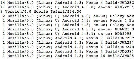 در عکس بالا به راحتی تعدادی دستگاه نکسوس قابل مشاهده است که با اندروید 4.3 شامل JWR25C, JWR24B, and JWR29/JWR29B تجهیز شده اند همچنین نام دستگاه هایی نظیر Huawei U8819 و ADR8995 4G از Pantech نیز به چشم می خورد که ممکن است بطور ناخواسته اشتباهی درج شده باشد زیرا این دستگاه ها اصلاً پرچمداران برند خود نیستند و حتی سال ساخت آنان نیز امسال نیست .