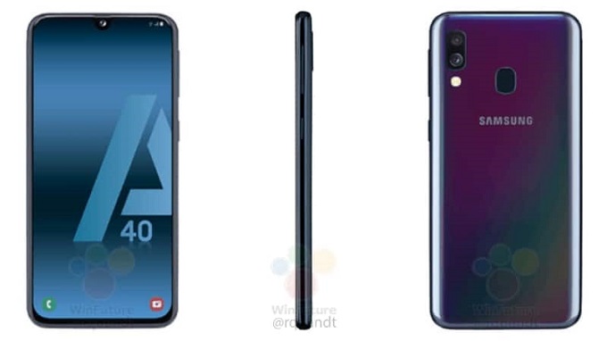 ساعاتی پیش سایت آلمانی WinFuture رندرهای مربوط به میان رده جدید گلکسی A40 سامسونگ را منتشر کرده است که در آن شاهد استفاده از صفحه نمایش Infinity-U و بریدگی ناچ قطرهای هستیم. حاشیه صفحه نمایش در این گوشی به خوبی حذف شده است، اما همچنان مانند اکثر گوشیهای موجود در بازار، در قسمت پایینی صفحه نمایش کمی حاشیه دیده میشود. در قسمت پشتی این دستگاه شاهد استفاده از ماژول دوربین دوگانه و فلاش LED هستیم؛ همچنین سنسور اثر انگشت این گوشی در قسمت پشتی قرار گرفته است.