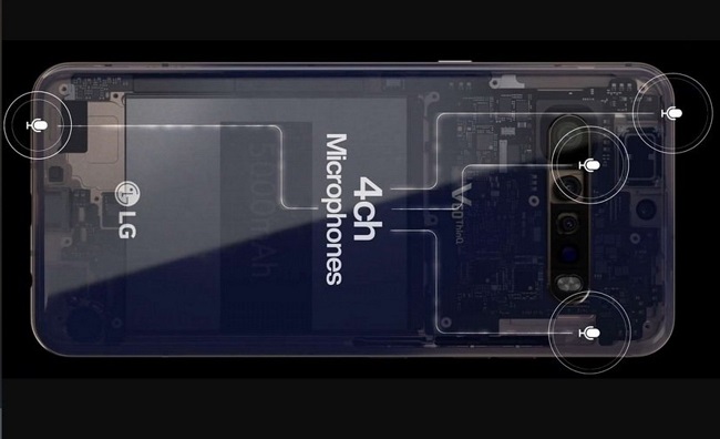 همانطور که در تصویر منتشر شده مشاهده میکنید، الجی در پرچمدار V60 ThinQ از باتری قدرتمند 5000 میلی آمپر ساعتی استفاده کرده است. در حال که اکثر شرکتهای تولید کننده گوشیهای هوشمند جک 3.5 میلیمتری را از محصولات خود حذف کردهاند، الجی همچنان در پرچمدار خود از جک 3.5 میلیمتری استفاده میکند؛ همچنین در قسمت زیرین دستگاه شاهد خروجی اسپیکر و درگاه Type-C هستیم.
