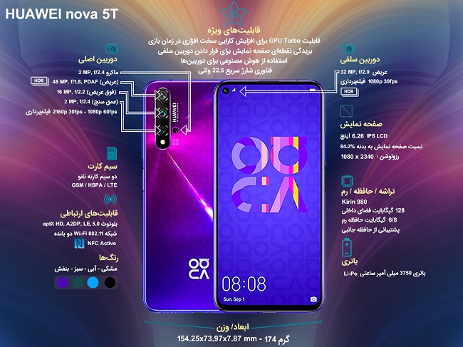 شرکت هواوی در مرداد ماه سال جاری از گوشی قدرتمند Nova 5T با امکانات جذاب و شگفت انگیز رونمایی کرد. مشخصات فنی این گوشی هوشمند مانند یک پرچمدار گران قیمت است اما قیمت آن در محدوده میان ردهها قرار دارد. در این مطلب قصد داریم تا Nova 5T را به همراه قابلیتهای برجسته و مشخصات فنی آن معرفی کنیم.
