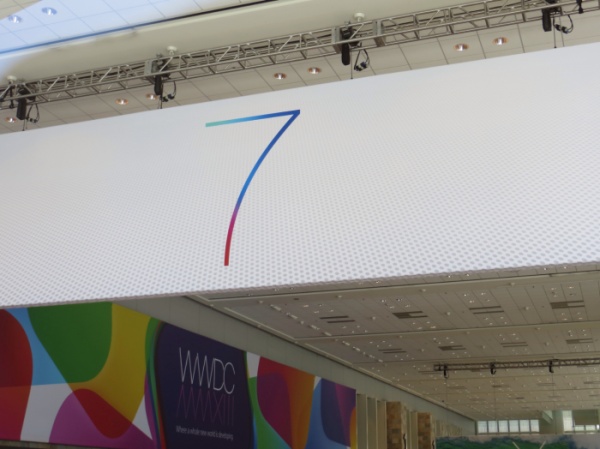 محل برگزاری کنفرانس WWDC 2013 در سان فرانسیسکو حاوی بنرهایی از سوی اپل است که با نشان دادن عدد 7 خبر از تایید رسمی معرفی سیستم عامل بعدی اپل را می دهد ، سیستم عاملی که قرار است با تغییرات کلیدی در ظاهر و رابط کاربری نوید روزهای خوب برای اپل را بدهد .