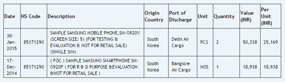 این وبسایت اعلام کرده است که دو مدل از اسمارت فون های سامسونگ به منظور تست و ارزیابی وارد هند شده است. یکی از این اسمارت فون ها مدل SM-G920A است و دارای صفحه نمایش 5 اینچی می باشد.