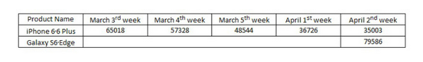 براساس اطلاعات منتشر شده از سوی موسسه ATLAS Research & Consulting عرضه گوشی های هوشمند سامسونگ Galaxy S6 و سامسونگ Galaxy S6 edge با افت فروش کوچکی از اسمارت فون های آیفون 6 و آیفون 6 پلاس متقارن شده است. اما دیگر اطلاعات قابل دسترس حاکی از آن است که اپل باید در مورد کاهش فروش محصولات خود نگران باشد.