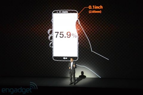 دیگر نوآوری ال جی در این تلفن حاشیه بسیار کم اطراف صفحه نمایش است ، ضخامت 2.6 میلیمتری برای این تلفن باعث شده است تا به رغم 5.2 اینچی بودن این صفحه نمایش اندازه آن همانند مدلهای رقیب حفظ شود و به زیبایی نمای جلو افزوده گردد .