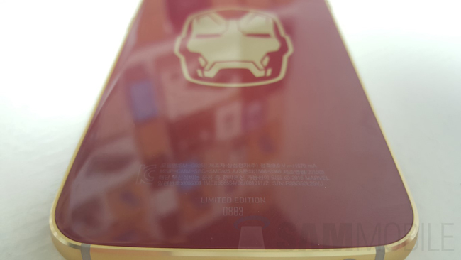 در اولین نگاه، با باز کردن جعبه گوشی، از دیدن ترکیب رنگ طلایی و قرمز شگفت زده می شویم. رنگ قرمز به کار رفته دارای حالتی درخشنده است که حس درجه یک بودن گوشی را انتقال می دهد. همانند نسخه اصلی، ظاهری بسیار آراسته و زیبا به همراه دو لبه انحنا یافته و دوربینی برآمده در پشت گوشی می بینیم. فقط این بار، دوربین، بلندگو و دکمه Home با رنگ طلایی احاطه شده اند. با نگاه کردن به قاب پشتی گوشی، کلاه طلایی Iron Man و در زیر آن شماره نسخه مربوط به دستگاه دیده می شود (شماره مربوط به تصویر زیر، 883 است).