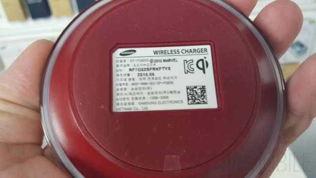 تنها مورد باقی مانده، پد شارژ بی سیم است که همراه گوشی عرضه می شود. این پد قرمز رنگ دارای طرحی قوسی مانند است و به شکل زیر می باشد: