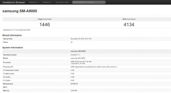 همان طور که قبلاً نیز اطلاعاتی راجع به Galaxy A9 فاش شده بود، اکنون نیز مشخصاتی از این اسمارت فون سری A سامسونگ، در GeekBench قرار گرفته است و با نام SM-A9000 دیده می شود. با ما همراه باشید.