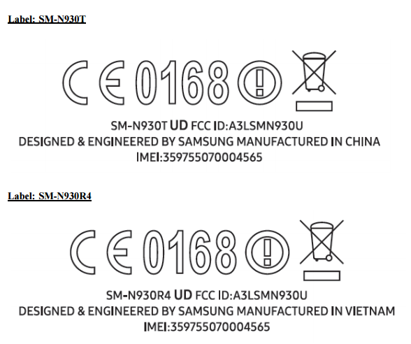 اگر در این قسمتها، عبارت «Manufactured in China» یا ساخته شده در چین مشاهده کردید، احتمالاً با یک باتری ساخت ATL در چین روبرو هستید و خوششانس بودهاید. هرچند که T-Mobile مدلهای ساخته شده در چین را هم جزو برنامهی پس گرفتن جای داده است. اما اگر عبارت «Manufactured in Korea» یا «… in Vietnam» دیده شد، حتما باید تصمیم به بازگرداندن گوشی بگیرید. سامسونگ در حال حاضر سفارش باتریهای خود از شرکت SDI را متوقف کرده بنابراین تمام باتریهای آیندهی نوت 7 احتمالاً توسط ATL یا یک شرکت دیگر غیر از SDI تأمین خواهند شد.