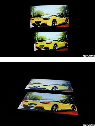 در حالی که Xperia Z1 دارای صفحه نمایش 5 اینچی 1080 پیکسلی است ولی زاویه ی دید خوبی نسبت به دیگر رقیب ها ندارد.با این حال،یک آزمون مقایسه کوچک آشکار ساخت که صفحه نمایش Xperia Z1f بهتر از Xperia Z1 می باشد.این مسئله بخاطر این است که پنل صفحه نمایش کوچتر از IPS ساخته شده ( تکنولوژی که در ساخت صفحه نمایش های LCD استفاده می شود) و زاویه دید و بازتولید بسیار بهتری را ارائه می کند.شما می توانید تصاویر مقایسه ای را در زیر ببینید.البته این مسئله شاید غرور صاحبان Xperia Z1 را خدشه دار کند.