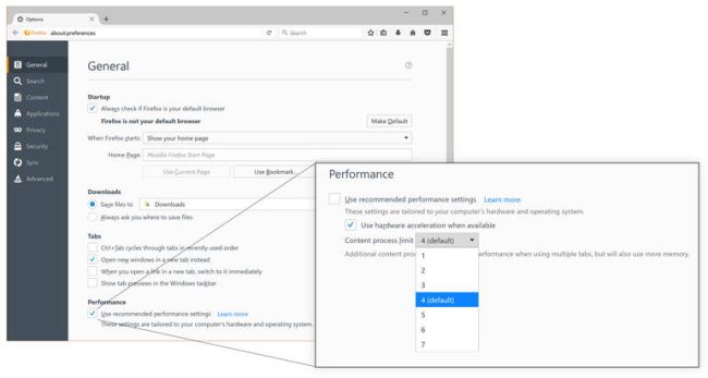 همانطور که گفتیم فایرفاکس ابزارهای ویژهای را هم برای مدیریت مالتی پراسس پیش روی کاربران قرار میدهد. ابزارهایی که برپایه e10s یا پروژه Electrolysis آماده بهرهبرداری شدهاند. به این ترتیب با رفتن به قسمت General Settings از قسمت Options میتوانید تعداد پروسههای در دست پردازش را مشخص کنید. این گزینه به طور پیشفرض روی عدد ۴ قرار گرفته است. دستگاههایی که از میزان رم بالایی بهره میبرند میتوانند تعداد پروسهها را به عدد هشت افزایش دهند. با تایپ عبارت about:support در نوار آدرس مرورگر میتوانید از فعال بودن این قابلیت اطمینان حاصل کنید. در صورتی که عدد یادشده در قسمت Multiprocess Windows بیشتر از ۰ باشد به منزله فعال بودن این قابلیت است. موزیلا این قابلیت را از فایرفاکس ۴۸ پیش روی کاربران قرار داده اما به مرور زمان بهینهسازی بیشتر را برای آن فراهم کرده است.