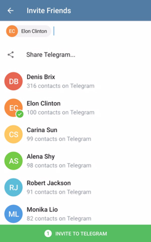 - دعوت دوستان برای استفاده از برنامه تلگرام، دستخوش تغییر شده است. بدین شکل، تلگرام افرادی را که از تلگرام استفاده نمیکنند؛ برای دعوت به استفاده از این برنامه براساس دوستان مشترک شما، اولویتبندی خواهد کرد.