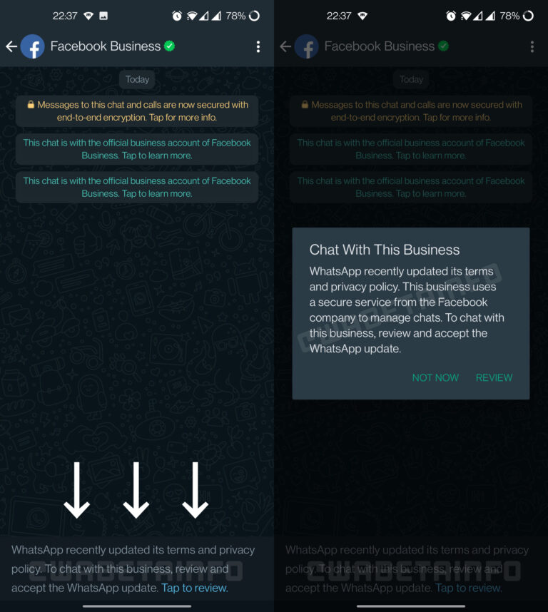 دیماه سال گذشته بود که برای اولین بار این موضوع از طریق اعلانی در برنامه واتساپ برای کاربران نمایش داده شد که در صورت عدم تایید آن کاربران قادر به استفاده از واتساپ نبودند.