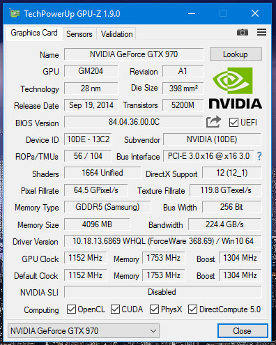 در نسخه 1.9.0 پشتیبانی از پردازنده های گرافیکی GeForce GTX 1060, GTX 940MX و GT 740 (GK107) اضافه شده است. همچنین بر روی کامپیوترهای مجهز به بیش از یک پردازنده گرافیکی GeForce "Pascal، می توان به استفاده از بریج SLI یا SLI HB پی برد. این قابلیت جدید برای به خریداران کامپیوترهای از پیش آماده این امکان را می دهد تا بفهمند آیا سازنده از بریج ارزان قیمت تر استفاده کرده یا خیر. با بهبودهای صورت گرفته در نگارش جدید، اکنون GPU-Z از خوانش فرکانس هسته پردازنده های گرافیکی AMD Polaris پشتیبانی می کند. همچنین با این نگارش، کلیه اطلاعات رد و بدل شده میان کامپیوتر شما و سرورهای TechPowerUp با استفاده از پروتکل امن HTTPS صورت می گیرد.