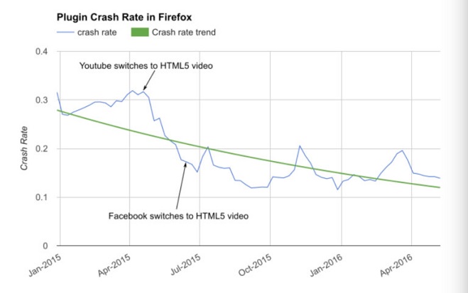 اگر از یک متخصص نرم افزار در مورد دلایل این اقدام متحد شرکت های توسعه دهنده مرورگرهای اینترنتی بپرسید موارد اصلی که نام خواهند برد، کرش های بسیار زیاد مرورگر در هنگام استفاده از فلش، عملکرد ضعیف تر به نسبت رقبای تازه نفس، مصرف بالای توان در دستگاه های قابل حمل و ... را به صورت کلی نام خواهند برد. همه این عوامل دست به دست هم دادند که ابتدا گوگل در کروم و سپس مایکروسافت در اج و حالا موزیلا در فایرفاکس اقدام به بلاک کردن محتوای فلش صفحات وب نمایند.