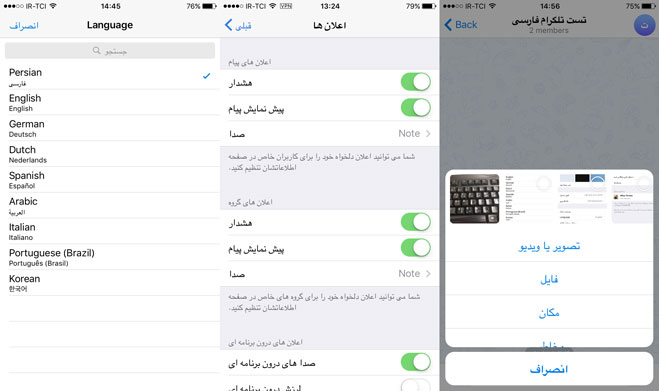 اگر شما هم به دلیل پشتیبانی نکردن نسخه رسمی تلگرام از زبان فارسی (پارسی) ناچار به استفاده از نسخه های غیر رسمی هستید یک خبر خوب برای شما داریم، به زودی فارسی به لیست زبان های پیش فرض تلگرام اضافه می شود. هم اکنون این قابلیت در نسخه آلفا iOS در دسترس است.