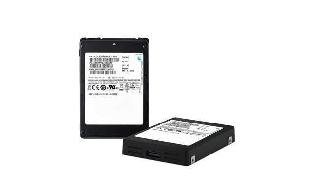 این SSD جدید PM1643 نام دارد و از رابط SCSI (SAS) با پهنای باند 12 گیگابیت بر ثانیه بهره میگیرد، بنابراین کاربران سازمانی را هدف میگیرد و به نظر نمیرسد از سوی کاربران خانگی مورد استفاده قرار بگیرد. سامسونگ در نظر دارد در طول سال جاری مدلهای بیشتری شامل 5.36 ترابایت، 7.68 ترابایت، 3.84 ترابایت، 1.92 ترابایت، 960 گیگابایت و 800 گیگابایت نیز عرضه میشود. درایو جدید سامسونگ از پکیجهای حافظه 64 لایه 512 گیگابیتی بهره میبرد. به گفته سامسونگ این SSD قادر به دست یابی عملکرد خواندن و نوشتن متوالی به ترتیب 400,000IOPS و 50,000IOPS، و عملکرد متوالی به 2,100 و 1,700 مگابایت بر ثانیه میرسد که به وضوح خیره کننده است.