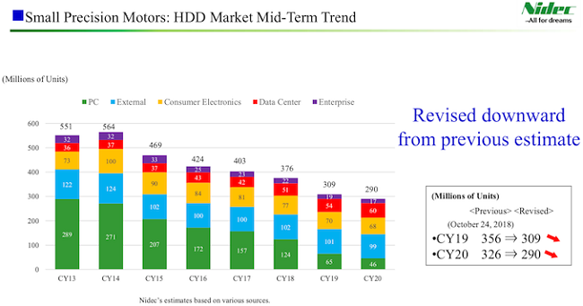 بر اساس گزارشهای مالی منتشر شده از شرکت ژاپنی Nidec که وظیفه تولید 85% موتور هارد دیسکهای موجود در بازار را به عهده دارد، این احتمال وجود دارد که در سال 2019 عرضه هارد دیسکهای مکانیکی به شکل چشمگیری کاهش پیدا کند. همچنین این شرکت ژاپنی معتقد است که در سال جاری میلادی عرضه هارد دیسکها تا 50 درصد کاهش خواهد یافت.