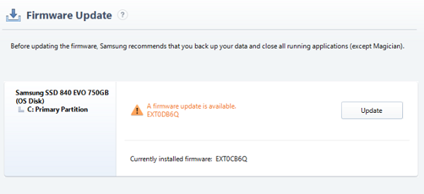 سامسونگ بروزرسانی جدید را در قالب نرم افزار Samsung Magician (نگارش4.6) منتشر کرده است و انتظار می رود که با رفع مشکل، کسی از firmware پیشین استفاده نکند.